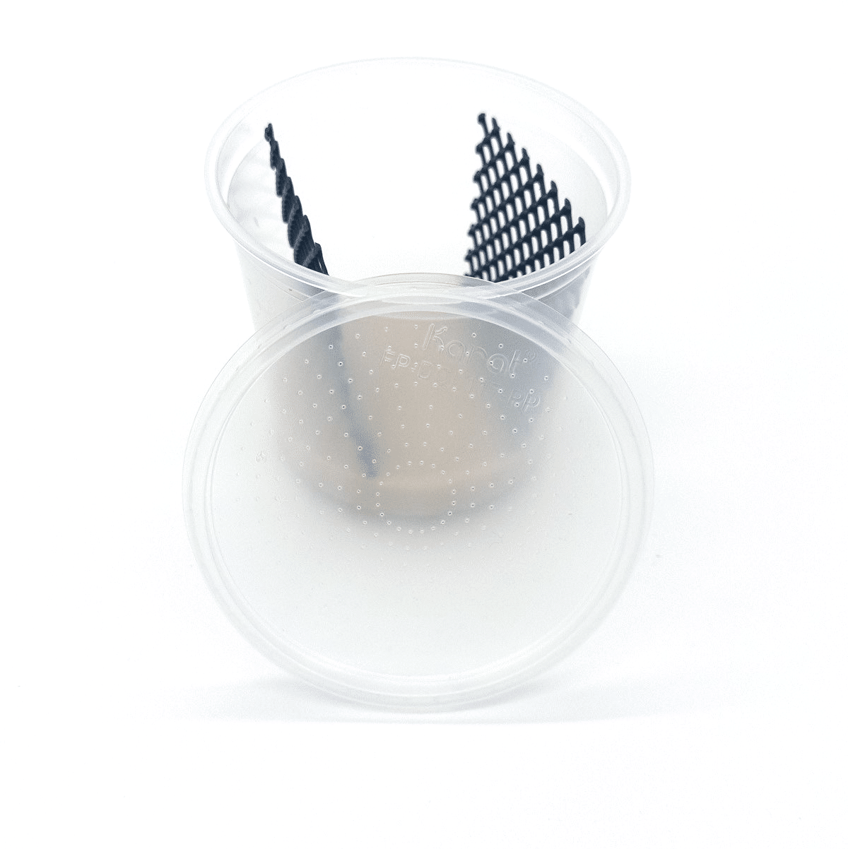 - Large 24 oz clear deli cup with mesh stapled in the bottom